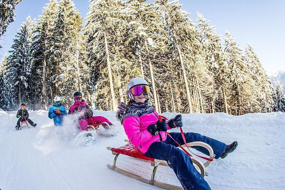 Eine rasante Rodelpartie mit gemütlicher Hütteneinkehr gehört zu jedem gelungenen Winterurlaub im Zillertal dazu. Besonders beliebt ist die beleuchtete Rodelbahn in der Zillertal Arena mit rund 7 km Länge sowie die abwechslungsreiche Rodelbahn am Spieljoch mit etwa 5,5 km Länge. Kostenfreie Rodelbahnen finden Sie unter anderem beim Goglhof in Fügen und in Hochfügen – ideal für zusätzlichen Winterspaß und ein urlaubsschonendes Freizeitprogramm abseits der Skipisten.